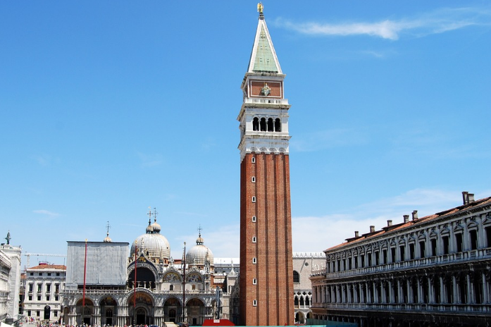 还有耸立在圣马可广场上的威尼斯钟楼,又称圣马可钟楼,是威尼斯的城市坐标。