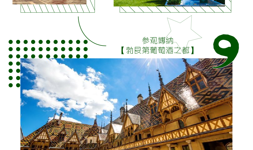 早餐后,前往勃艮第博讷参观,之后返回巴黎,沿途领略法国田园美景。