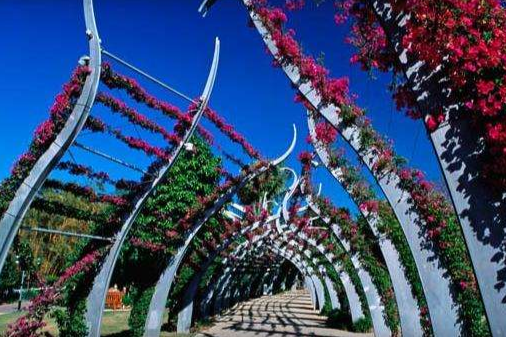 【基督城植物园】基督城植物园建于1863年7月,当年的天然湿地和沙丘如今已被改造成了繁花似锦的美丽大园林。植物园拥有10座风格各异的附属花园,种有一万多种本地或引进的植物品种,这些附属花园大部分都位于雅芳河流域内。玫瑰花园,药草园等众多风格各异的花园如果由坎特伯雷博物馆一侧的罗尔斯顿大道进入植物园,可以欣赏到一年一度的花坛园艺展览。