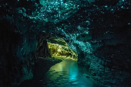 蓝色星光布满苍穹【怀托摩萤火虫洞】, 【罗托鲁阿湖】:湖水清澈湛蓝 早餐后乘车前往著名的怀托摩,蓝色星光布满苍穹的【怀托摩萤火虫洞】是新西兰必到的景点,石灰岩构造和萤火虫令人叹为观止。 进入蛮声世界的大教堂岩洞 (Cathedral Cave),这个巨大的岩洞以空间回声著称。当地导游带你踏上发现之旅,了解毛利文化掌故, 溶洞及形成的过程。再乘坐小船静静的滑行驶入布满萤火虫的地下世界,享受数万萤火虫点缀的璀璨的星空。