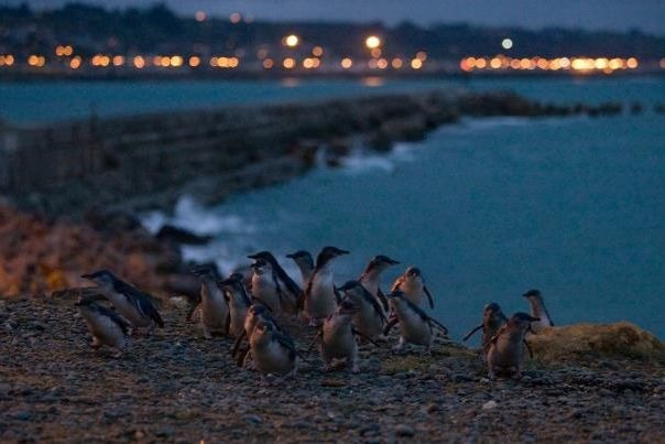 随后乘车前往但尼丁,傍晚时分前往观看【小企鹅归巢】。在新西兰与澳洲南部的海岸都有小企鹅,每天黄昏,成群的蓝企鹅聚在近海等待黑暗。天黑后,它们游到岸上的看台下方。它们爬上陡峭的岸边,到岩壁顶上稍做休息后,越过观赏区回到栖息地,巢中有它们的伴侣或饥饿的幼鸟等待着。