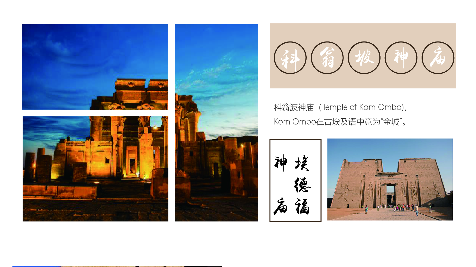 【科翁坡神庙】 游船上享用自助早餐,游轮起航前往科翁坡,抵达下船;参观【科翁坡神庙】;在古埃及语中意为“金城”。它位于尼罗河边的一座小山丘上,建造于托勒密王朝。参观结束后返回游轮享用自助午餐;继续前往埃德福。抵达埃德福后下船,安排乘坐马车前往被誉为保存得最完整的古埃及神庙-【埃德福神庙】。参观结束后返回游轮游轮上享用自助晚餐。夜宿游轮。