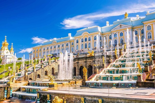 午餐后,前往参观夏宫宫殿(入内),也称作彼得宫(Peterhof Palace),位于芬兰湾南岸的森林中,距圣彼得堡市约30公里,占地近千公顷,是历代俄国沙皇的郊外离宫。始建于1714年,建筑豪华壮丽,被誉为“俄罗斯的凡尔赛”。在这里还有著名的夏花园,和喷泉供大家欣赏。