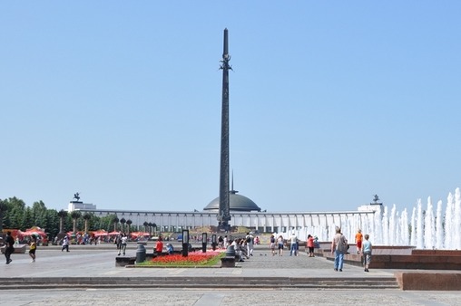 午餐后,若红场周边还想继续游览或未游览完毕可在此继续游玩。游毕前往莫斯科胜利广场(自由活动,拍照),胜利广场的北面是一组大型的喷泉,与喷泉相对的胜利广场的南面是常胜圣格奥尔基大教堂。胜利广场的东边,就是莫斯科的凯旋门。胜利广场西面,映入眼帘的是一座高大的胜利女神纪念碑,高141.8米,象征卫国战争1418个战斗的日日夜夜。三棱形的碑身,每个棱面上用浮雕板表现了莫斯科等12个英雄城市周围的战斗情景。高约100米处,古希腊胜利女神右手拿着金光灿灿的胜利桂冠。她身旁飞着两个胖胖的小天使,一男一女,吹着胜利的号角。纪念碑的下面,是神奇勇士格奥尔基手持长矛刺杀毒蛇的雕像。前面5层阶梯式台阶,每一层代表战争的一年。纪念碑后不远处是为纪念卫国战争而修建的卫国战争中央博物馆(可外观可入内),馆内收藏了众多珍贵的纪念品。广场的后面,有露天的展览,有各种火炮、坦克、飞机等实物。另一侧还有舰艇的展示,军事强国初露端倪。