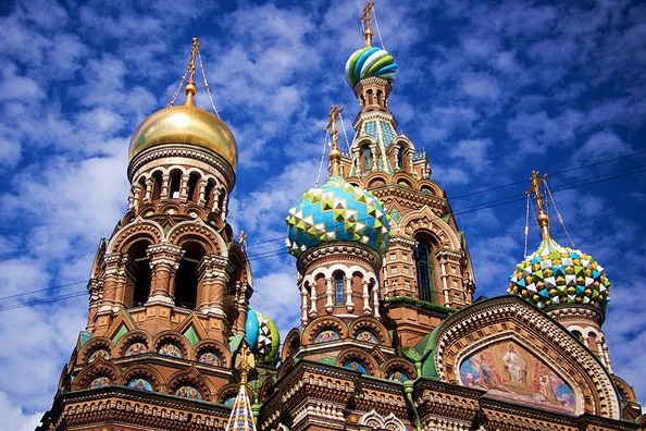 之后参观圣彼得堡著名的涅瓦街,游览这里的一颗艺术明珠——滴血大教堂(入内),也被称为基督复活教堂和基督喋血教堂,建于1883年-1907年,算是圣彼得堡地区少有的纯俄罗斯风格建筑,其蓝本就是莫斯科红场上的瓦西里升天大教堂。1881年3月1日亚历山大二世(Tsar Alexander II)在此地遇刺身亡,这座教堂就是为了纪念他而建造。建堂内有精美的马赛克拼图和壁画,教堂不大,但是很漂亮。之后闲逛涅瓦街。 这里还有一座带翅膀的金狮子守护的桥——银行桥,是圣彼得堡的画片上最常出现的景色,他与远处的滴血大教堂交相辉映,是完美的拍摄地点。