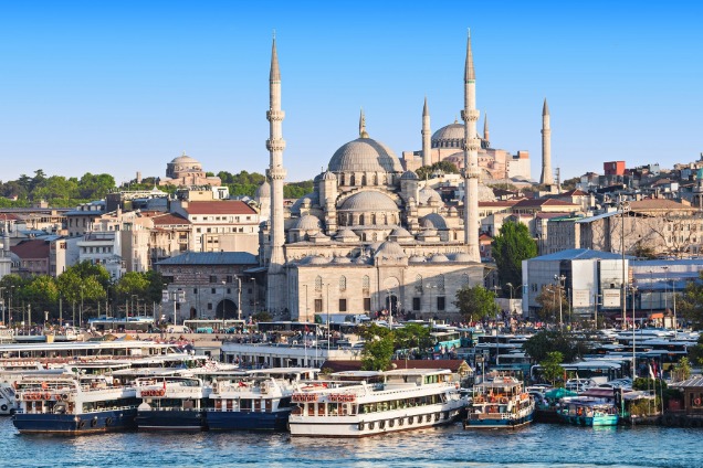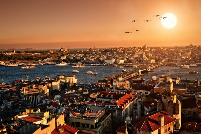 【伊斯坦布尔】是世界上唯一一个地跨欧、亚两大洲的城市,博斯普鲁斯海峡横贯其中。曾为古代三大帝国──罗马帝国、拜占庭帝国和奥斯曼帝国首都的伊斯坦布尔,以其绝佳的地理位置及丰富多彩的文化遗迹,使访客着迷,其所拥有的博物馆、教堂、宫殿、清真寺、市场以及美妙的自然风光,让人们流连忘返。