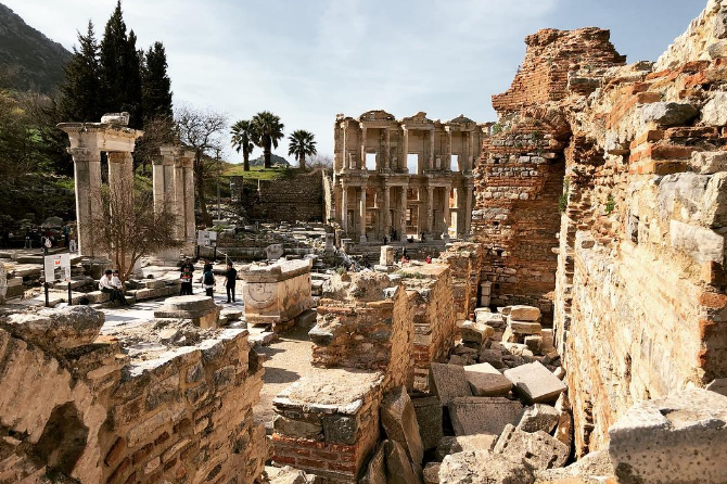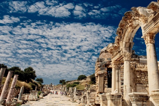 【艾菲索斯古城】土耳其最有观光价值的古城 【艾菲索斯古城】土耳其最有观光价值的古城,也是目前世上保存的最好也最大的希腊罗马古迹城。阿尔特米斯神殿名列古世界7大奇景,建筑时间前后长达120年,其规模超过了雅典卫城的帕特农神庙,也是最早的完全用大理石兴建的建筑之一。这座城是埃及艳后拜访安东尼让古罗马人惊艳的地方,也曾富裕到在公元前400年就有街灯!