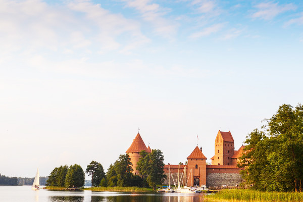 特拉凯城堡是立陶宛小城特拉凯最著名的景点。城堡建造于1409年,是波罗的海地区唯一的一座水上城堡。它由橙红色的砖石砌成,四周建有带中世纪骑士风格的圆锥尖顶瞭望塔,城内还有护城河。夕阳下的古堡,矗立在水面上,带来梦幻般的美感。