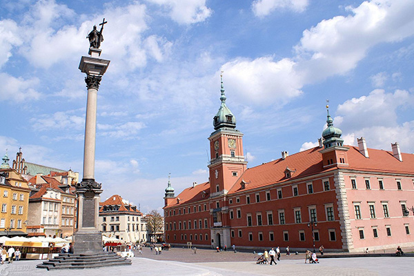 从德国首都柏林启程前往波兰的首都华沙。华沙古城区位于维斯瓦河西岸,中世纪巍峨壮观的红色尖顶建筑群集中在这里。被誉为“波兰民族文化纪念碑”的昔日皇宫是华沙著名的古老建筑,它是五角形建筑,坐落在13世纪的古堡当中,四周环绕着采用红砖砌成的内墙和外墙。不远处的皇宫广场中心屹立着泽格蒙特三世瓦扎的圆柱纪念碑。站立在圆柱上的泽格蒙特三世头戴王冠,手执利剑和十字架。传说国王宝剑的指向分别代表:向上指象征胜利和幸运,向下预示厄运和衰亡。还有华沙的城标——美人鱼雕像,她左手紧握盾牌右手高举利剑,英气勃勃,非常特别。城内的居里夫人故居、安放肖邦心脏的圣十字教堂和哥白尼雕像则给华沙增添了一抹传奇的色彩。夜宿华沙附近酒店。