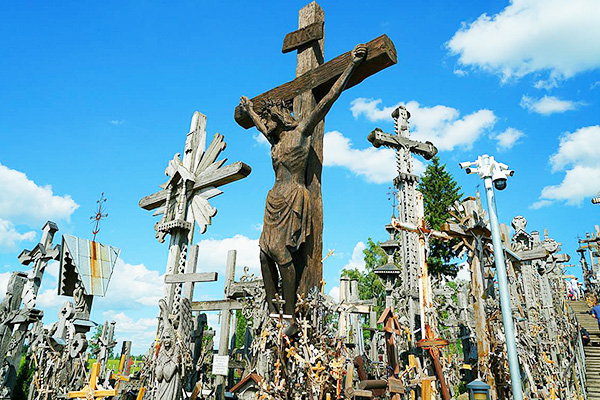 在希奥利艾,十字架山不容错过。在立陶宛几个世纪的历史中,十字架山曾经是天主教徒以和平方式忍耐所面临威胁的象征,也是立陶宛人为和平、为国家、为立陶宛独立战争期间失去的亲人祈祷的地方。十字架山有一种让人肃然起敬的空旷和寂静。其最前面有一个很高的十字架,架上的基督张开双臂。几十万个大大小小的十字架,刻着不认识的语言,静静地矗立在一片沉寂之中。