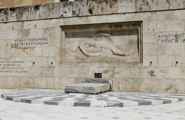 【无名英雄纪念碑Tomb of the Unknown Soldier】无名战士纪念碑位于希腊议会大厦前,建于1928年,是为了纪念在摆脱土耳其统治的战争中捐躯的希腊无名英雄。无名战士纪念碑的主体是无名战士浮雕,一个戴头盔的古希腊战士仰卧在一块石板上。