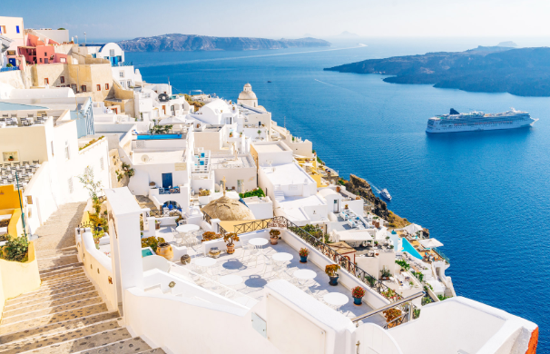 早餐后我们乘坐渡轮前往圣托里尼岛,在渡轮上欣赏蔚蓝的清新海景,下船后到达圣托里尼岛酒店登记入住,随后前往伊亚小镇看最美日落,夜宿圣托里尼岛。"