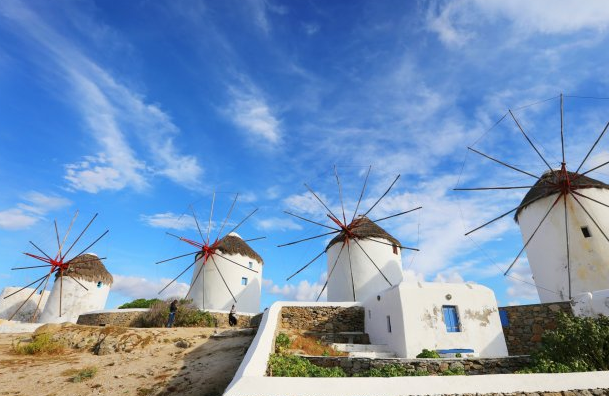 米克诺斯岛以风车闻名,岛上到处都可以看到风车,这中间最著名的就是这个海港风车又名卡特米利风车,建于16世纪,五座风车一字排开,圆柱形的外墙,稻草覆盖的尖顶,这里也是来米克诺斯必拍的风景点。