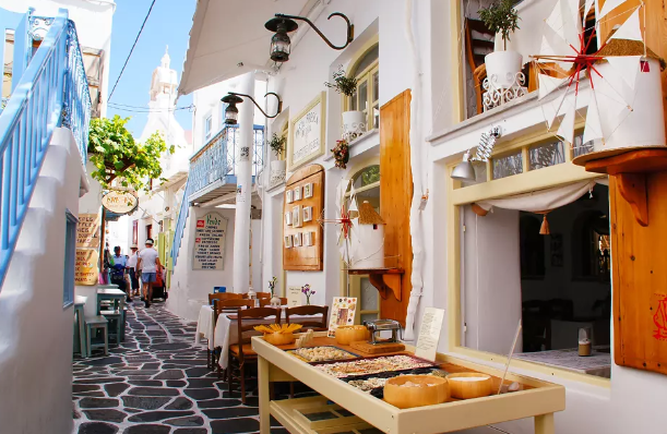 【米克诺斯镇】夜晚的米克诺斯岛充满活力,通常凌晨三、四点钟仍热闹非常,正常营业的商店,各式酒吧餐厅人声鼎沸。逛累了,坐在路边、海边极富情调的酒吧悠闲地喝上一杯,听着迷人的音乐,望着深邃的夜空,好不惬意。所以来到米克诺斯岛,一定要体验一番岛上的夜生活,才算是真正到过米克诺斯岛。