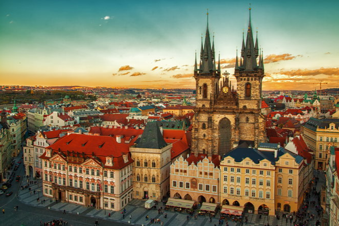 捷克首都布拉格,是全世界第一个整座城市被指定为“世界遗产”的城市,座落在拉贝河支流伏尔塔瓦河两岸,高高低低的塔尖,毗连成一片塔林,因而布拉格有“百塔之城”之称。在阳光照耀下,“百塔”显得金碧辉煌,因而又被称为“金色的布拉格”。