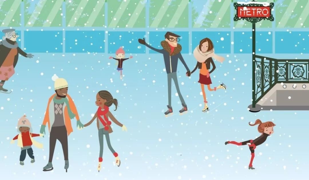 虽然滑冰场场地不大,但是五脏俱全,而且都是真冰。带着小孩子学习滑冰的年轻妈妈,甜蜜的情侣,下地铁正好路过的三五成群的朋友,在川流不息之间感受一些乐趣,多么欢脱的生活。