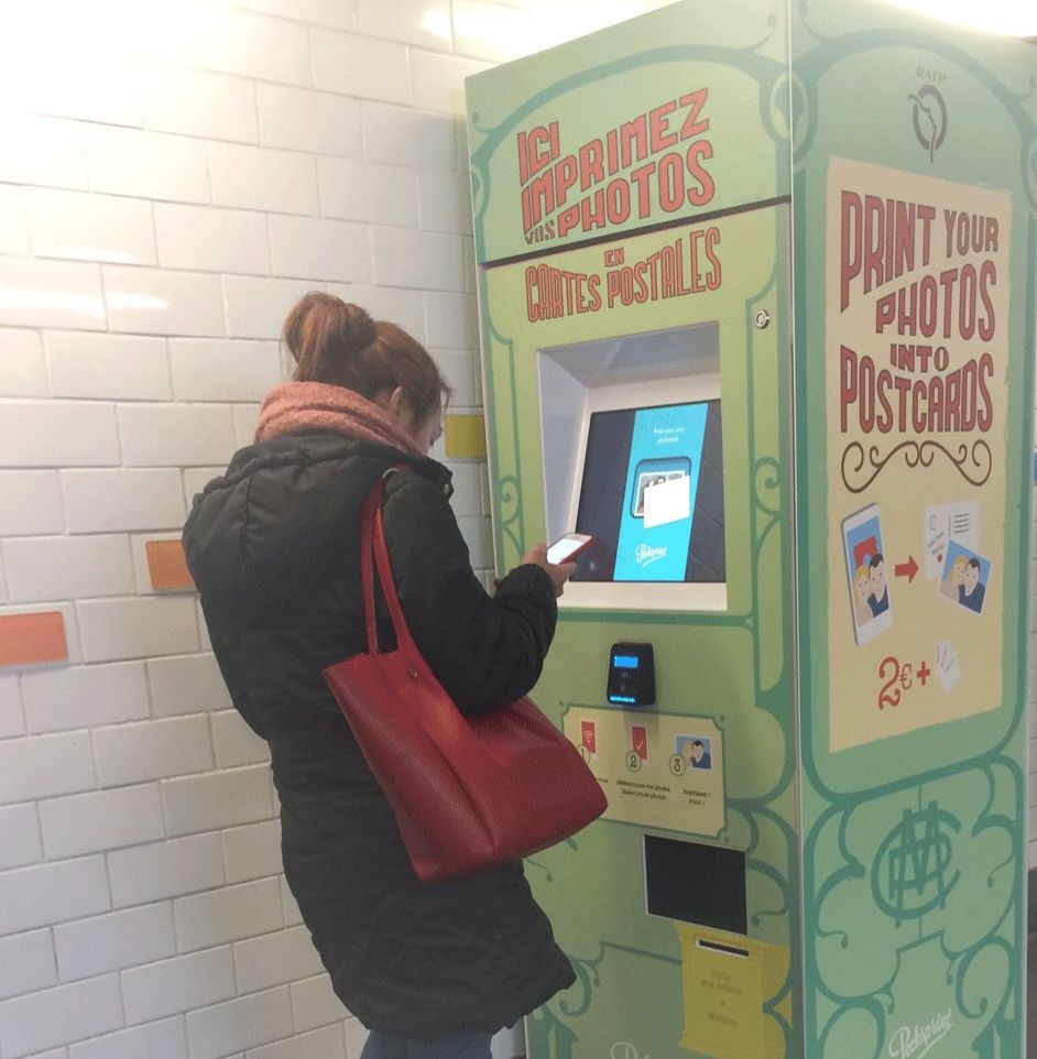 不仅如此,RATP还在Charles-de-Gaulle-Étoile站(Wagram出口)处放置了一个Peeksprint终端。这样乘客们就可以通过连接wifi在这个上面打印手机照片来制作明信片,与此同时这个机器上还可以购买邮票,这样是不是方便很多。